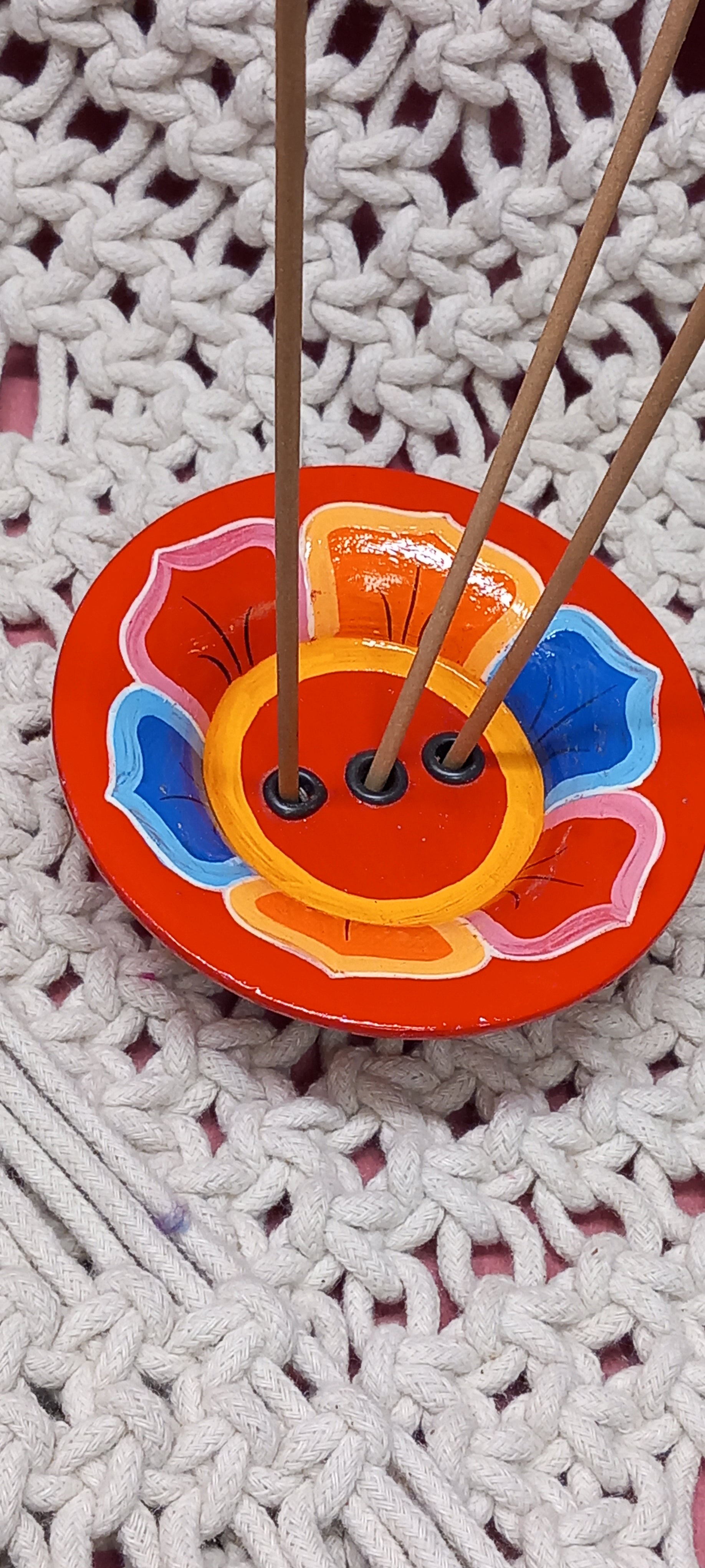Una flor que florece en cada rincón con esencia espiritual. Este incensario en forma de flor de loto está hecho a mano en madera y decorado con pinceladas artesanales que realzan su belleza única. La flor de loto simboliza pureza, renacimiento y conexión espiritual, convirtiendo esta pieza en mucho más que un objeto decorativo. Ideal para acompañar rituales de calma, armonía y bienestar. Posibilidad de varios inciensos a la vez.