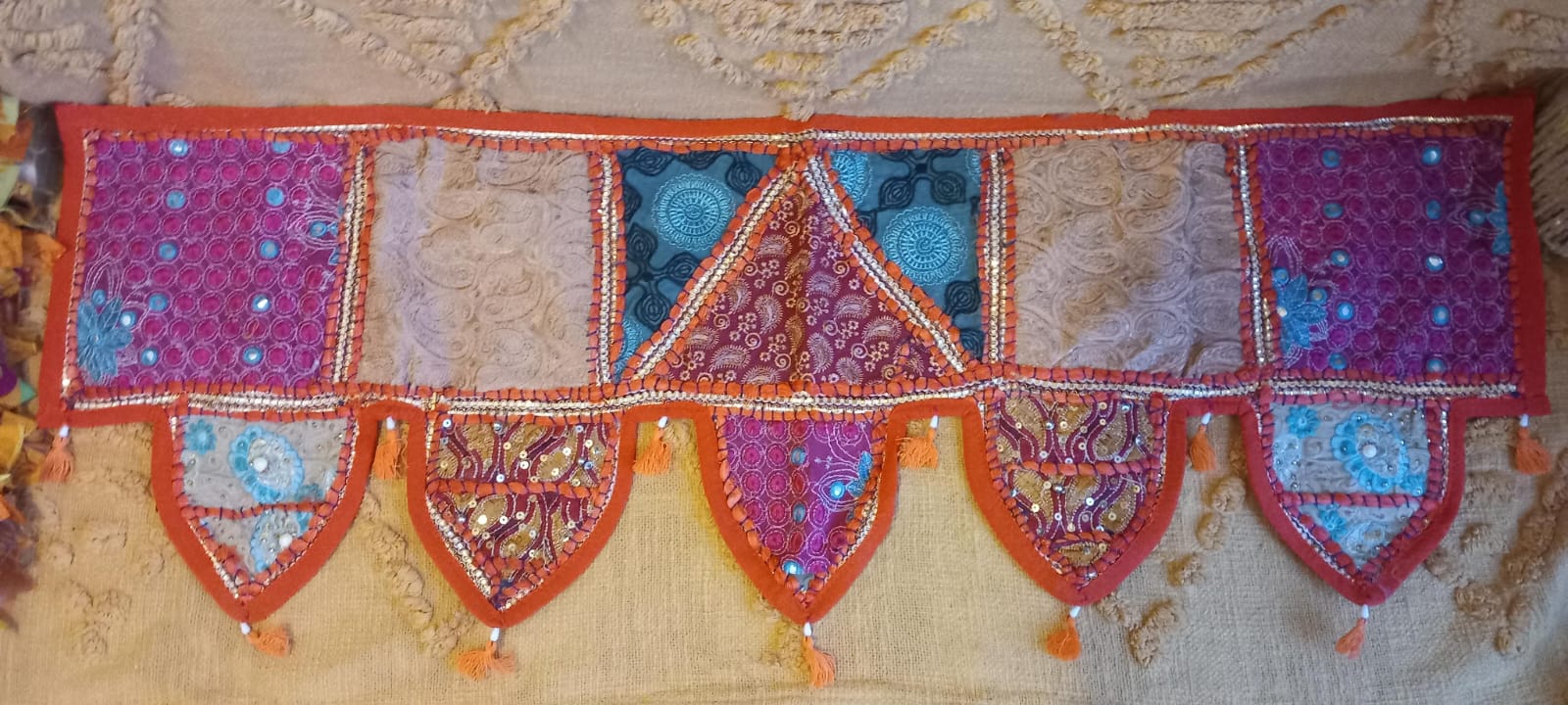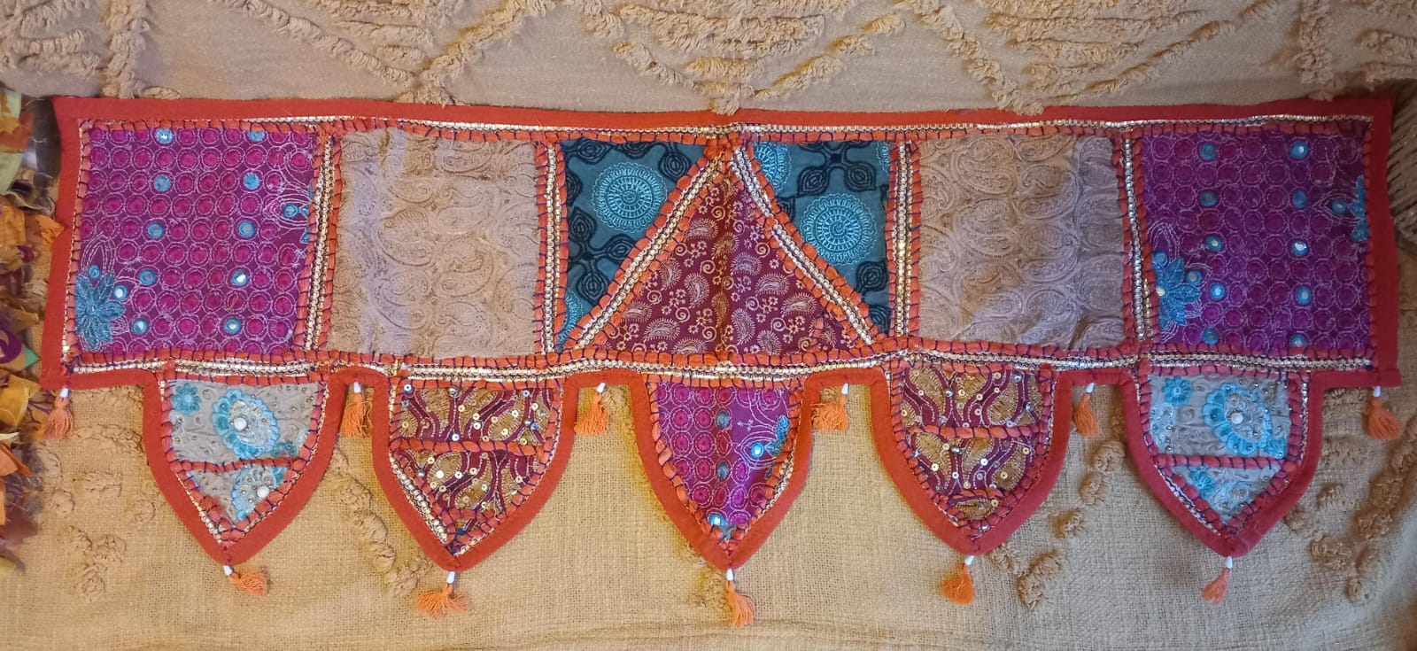 TORÁN BORDADO PATCHWORK PARA EMBELLECER Y ATRAER BUENAS ENERGÍAS,HECHO A MANO Y ES UNA PIEZA ARTESANAL ÚNICA.ENVÍO GRATIS SIN PEDIDO MÍNIMO.