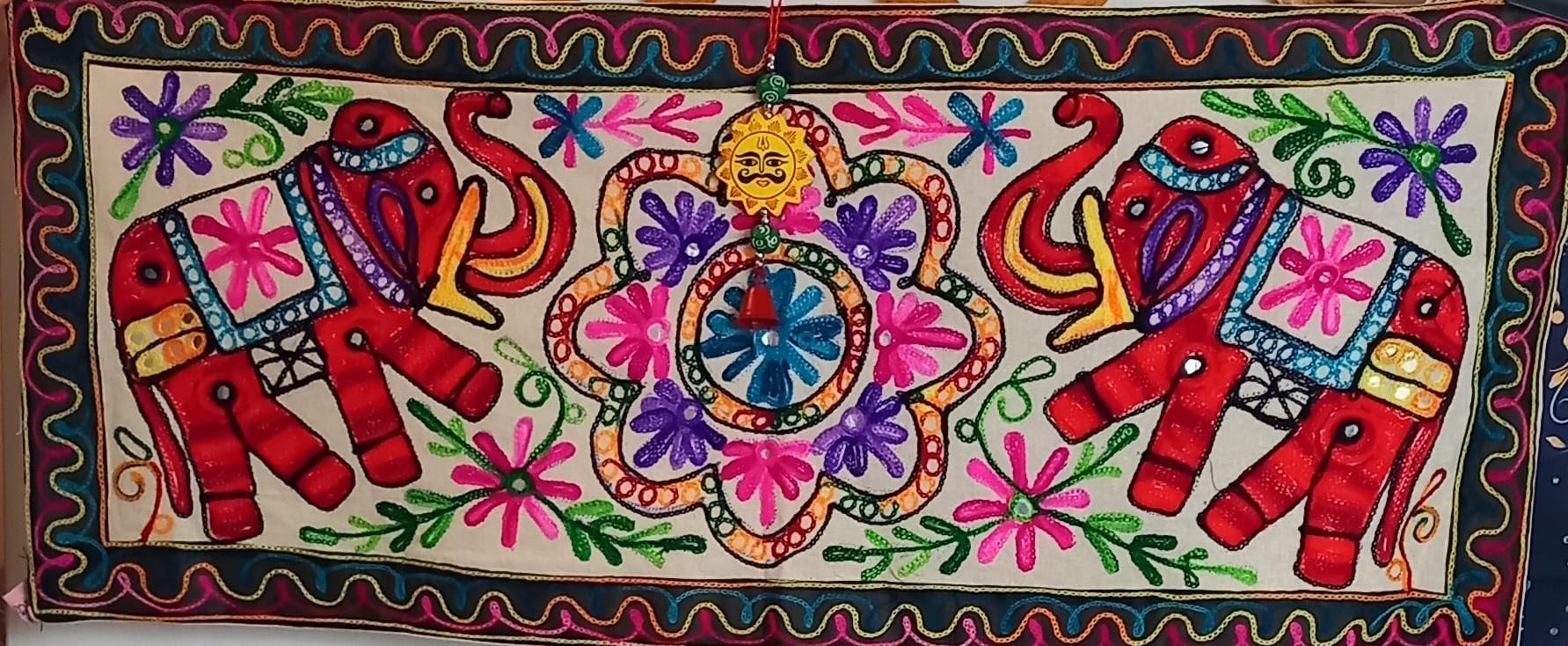 Técnica: bordado artesanal con hilos de colores y espejitos
