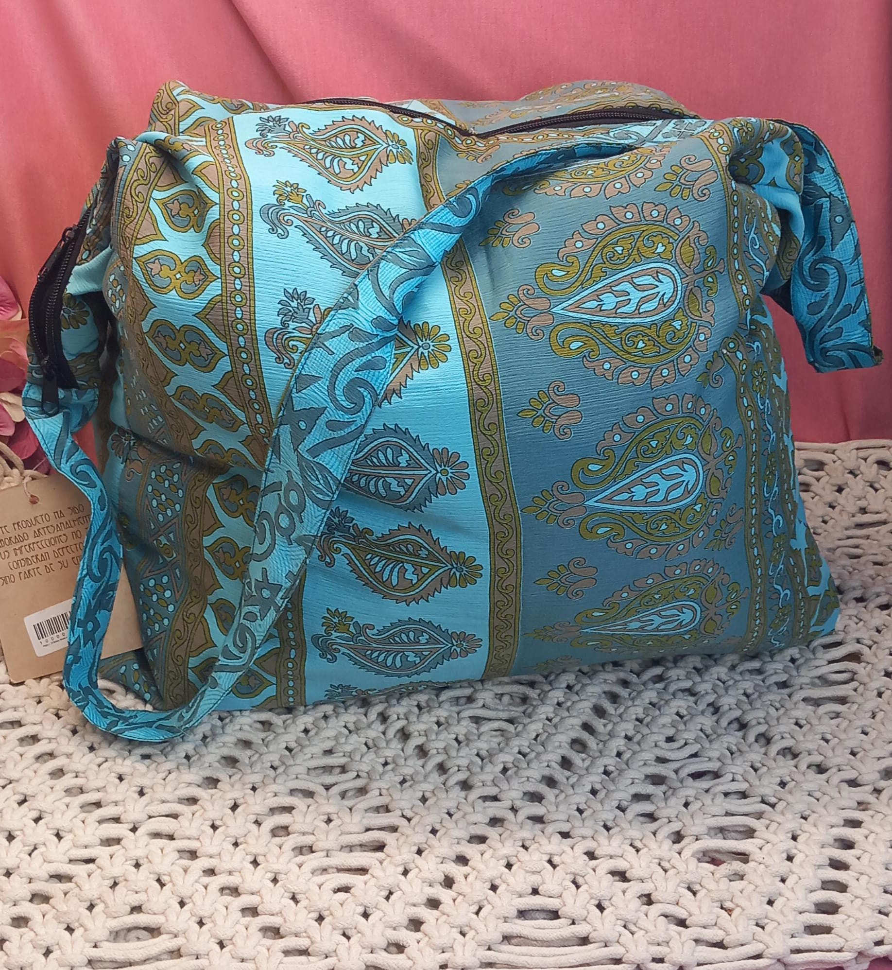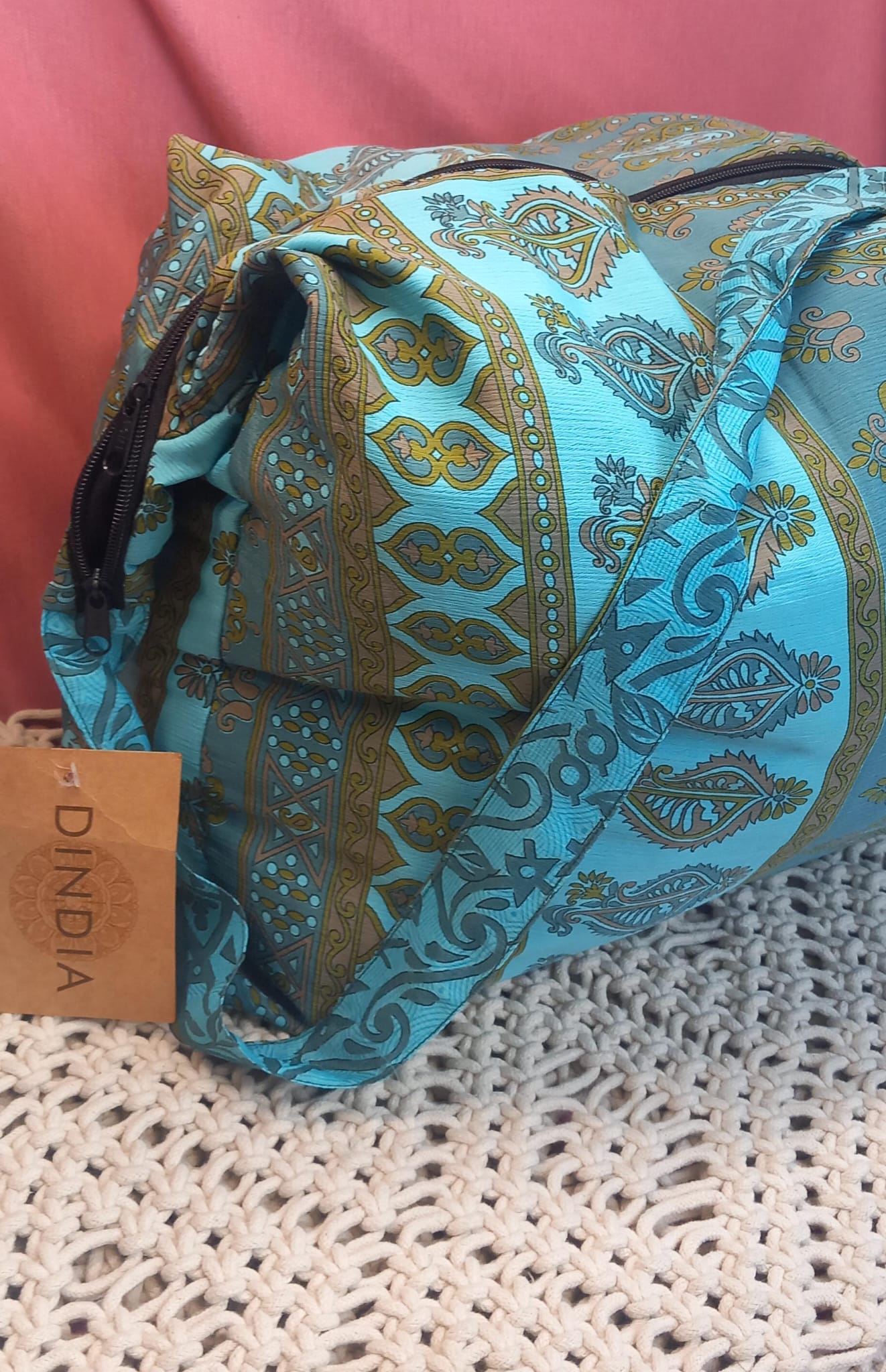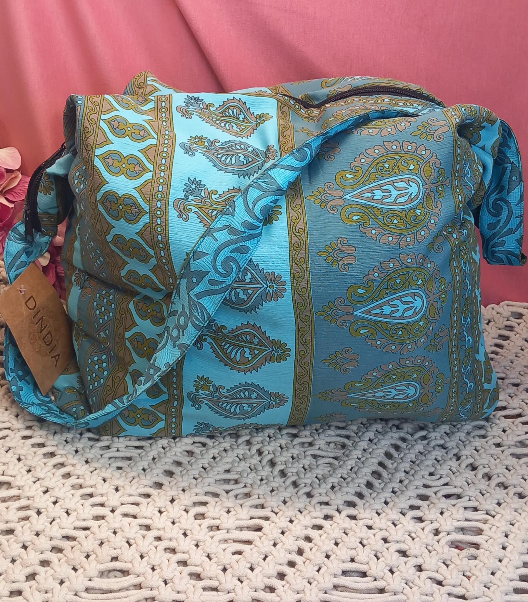 Bolso india de escapada, fin de semana,playa,montaña, gimansio...Con cremallera.