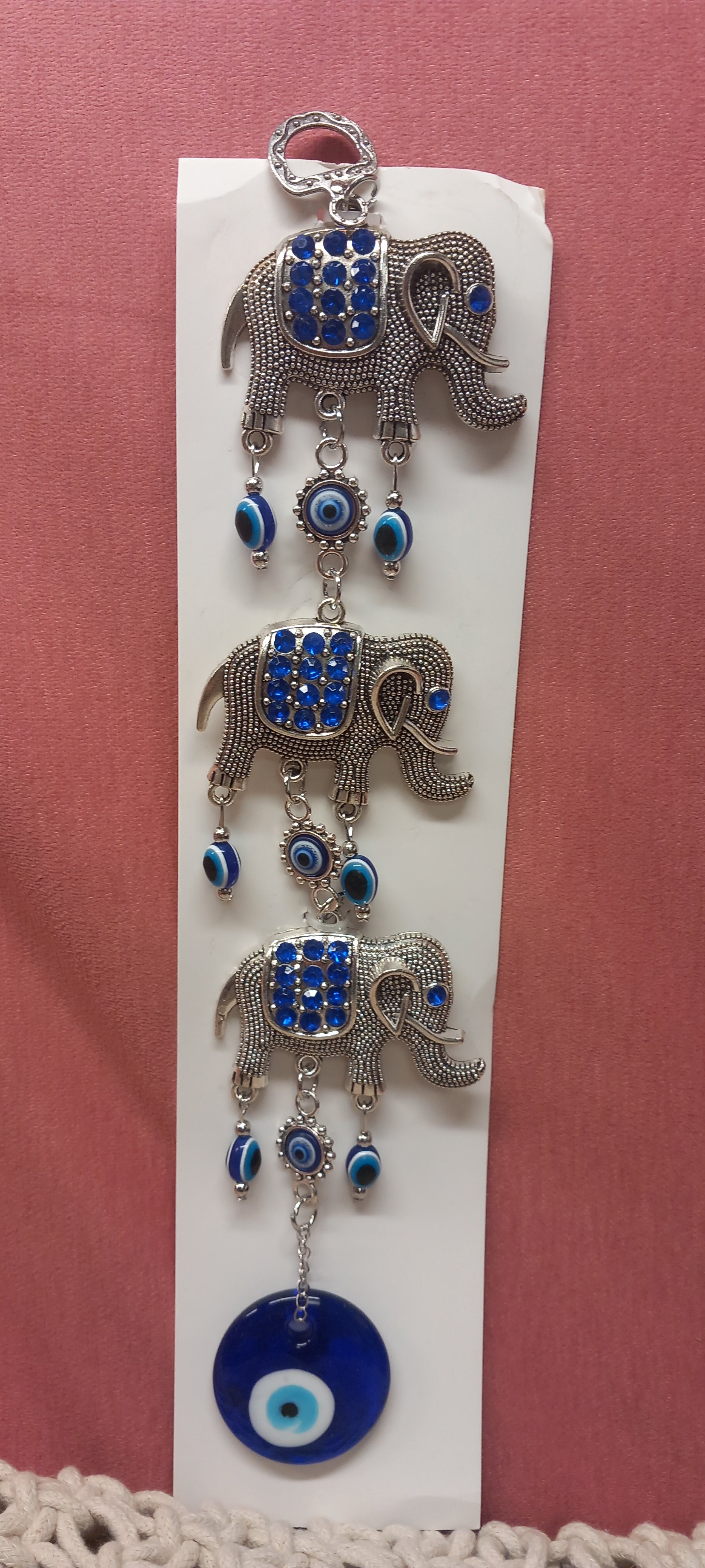 Colgador tres elefantes y ojo turco para el mal de ojo y la protección.Envío gratis sin pedido mínimo.