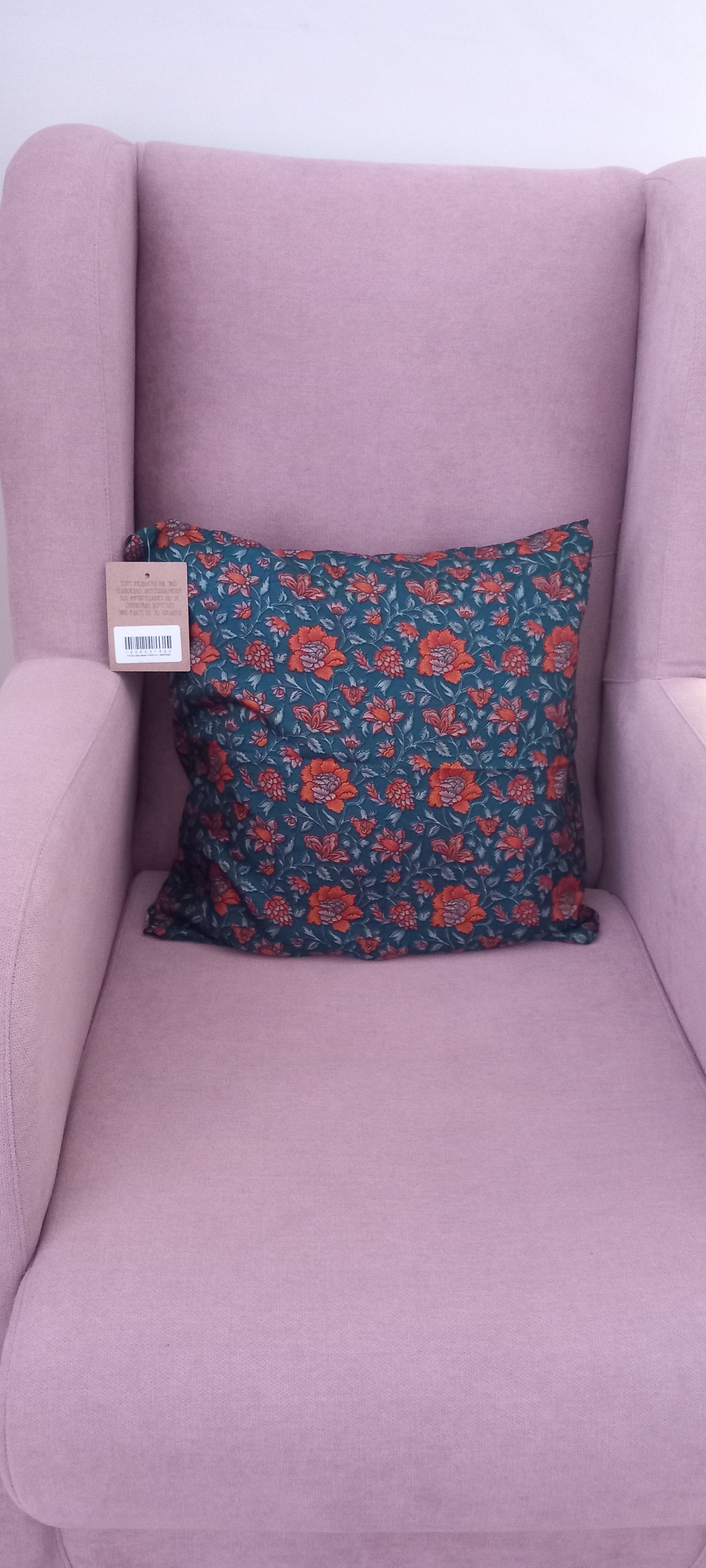 La Funda de Cojín Saree 40x40 cm es una pieza artesanal que combina elegancia, sostenibilidad y exclusividad en cada detalle. Confeccionada con telas sedosas recicladas de saree, cada funda es única gracias a sus colores vibrantes y estampados irrepetibles. Su tacto suave y agradable, junto con el práctico cierre de cremallera, facilita la colocación del relleno y aporta comodidad. Perfecta para crear rincones únicos y llenos de personalidad, es ideal para quienes buscan añadir un toque de autenticidad y sofisticación a cualquier espacio.