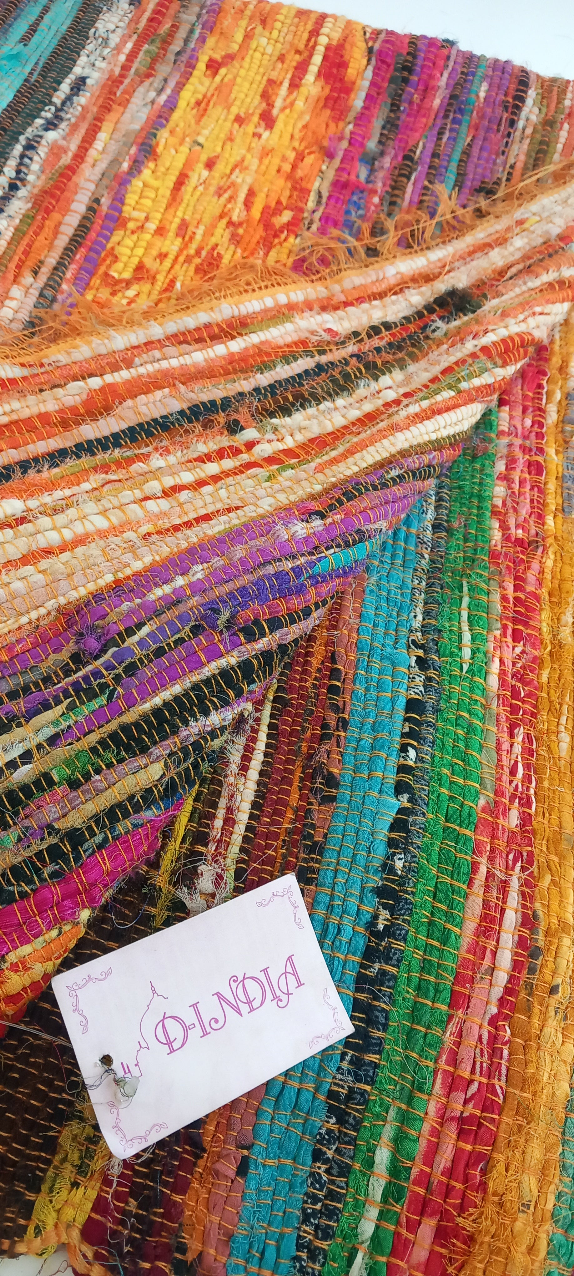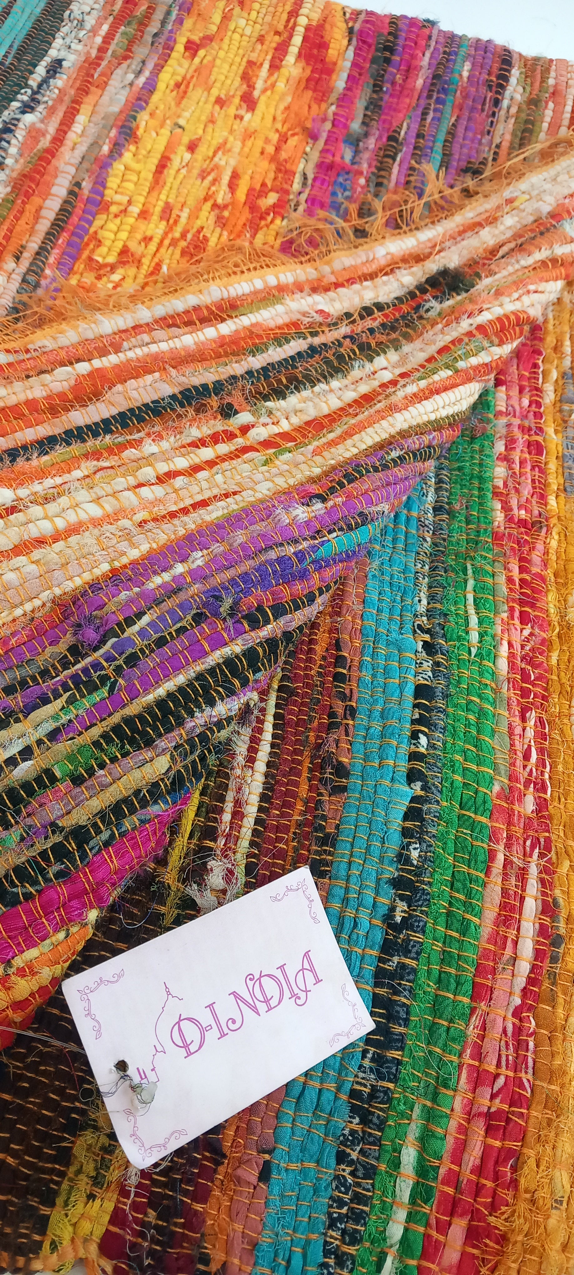 JARAPA MULTICOLOR FLECO NARANJA EXPLOSIÓN DE COLOR TEXTURA Y TRADICIÓN,ELABORADA ARTESANALEMENTE EN INDIA. ENVÍO GRATIS SIN PEDIDO MÍNIMO.