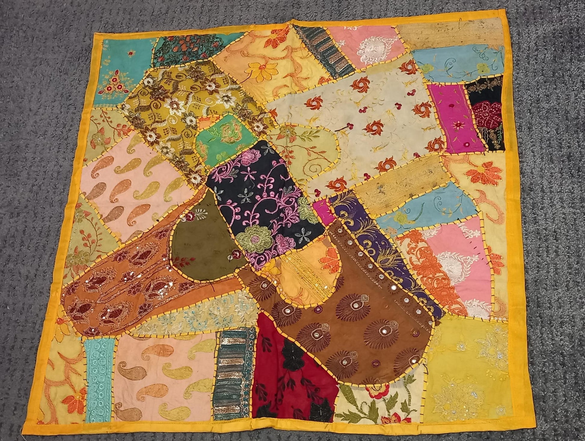 PATCHWORK TEXTIL EN TAPIZ 90X90 CONFECCIONADO ARTESANALMENTE EN INDIA.ENVÍO GRATIS SIN PEDIDO MÍNIMO.