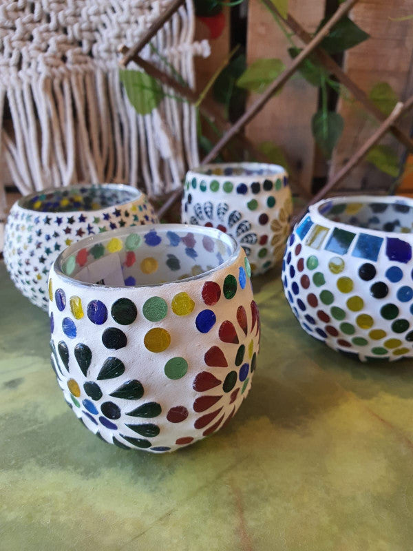 Este portavelas es una pequeña joya de vidrio que transforma cualquier espacio en un rincón mágico. Su mosaico de cristales de colores refleja la luz de la vela con un encanto único, creando una atmósfera cálida y especial. Cada pieza, aunque similar en estilo, tiene una personalidad propia gracias al trabajo minucioso y artesanal que las define. Perfecto para personas que desean decoración con alma, este accesorio se convierte en un detalle inolvidable para quienes buscan belleza en lo cotidiano.