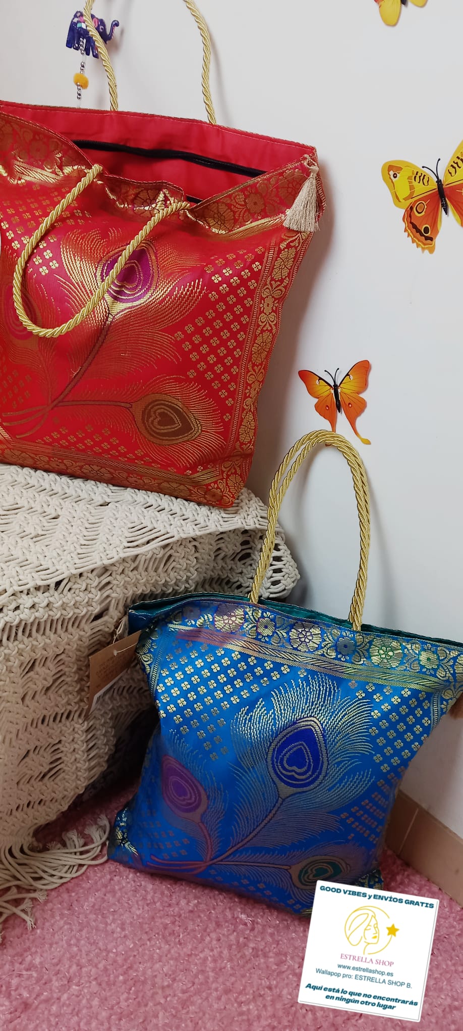 Un bolso que combina tradición y diseño en una pieza única; es una fusión de artesanía y estilo boho, elaborado con retales de tejidos tradicionales saree. Sus coloridos bordados y detalles lo convierten en un accesorio imprescindible para quienes buscan originalidad y funcionalidad en su día a día. Su diseño doble asa aporta comodidad, mientras que el cierre de cremallera garantizan seguridad.